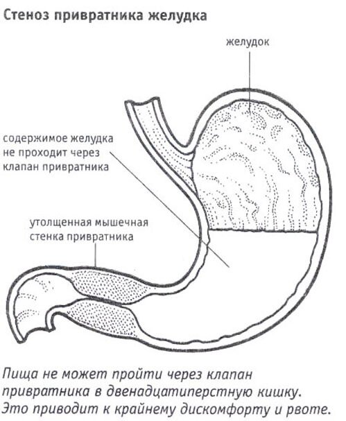 Пища в желудке перемешивается с кислотой и затем проходит через клапан, называемый привратником, в двенадцатиперстную кишку, которая является первым отделом тонкого кишечника. Некоторые дети рождаются с врожденным утолщением этого клапана, что вызывает сужение (стеноз).