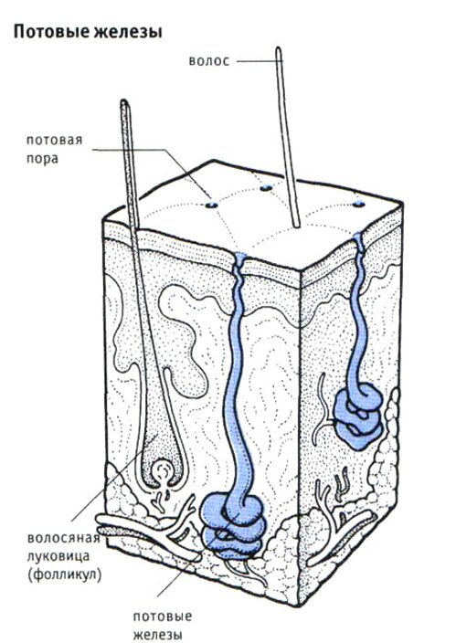 Пот, который стекает каплями, не охлаждает. Деятельность потовых желез находится под контролем нервной системы, и потоотделение является главным физиологическим регулятором повышенной тепловой нагрузки.