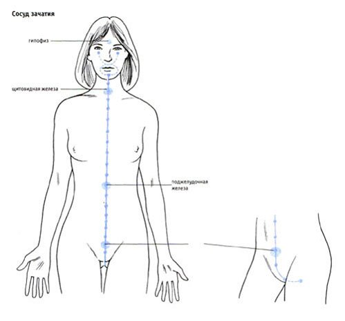 Беременность передает энергию в матку, таким образом снижая жизненную силу, необходимую для правильного поддержания состояния щитовидной и поджелудочной желез. Так сосуд зачатия получает энергию от самого близкого вам человека. Родители в первую очередь передают детям энергию из своих сосудов зачатия.