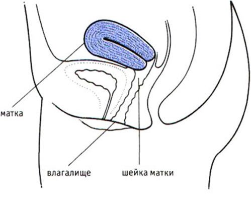 В таком положении тело матки наклонено или направлено в сторону позвоночника. Шейка матки и наружный зев автоматически могут продвинуться в переднюю часть влагалища.